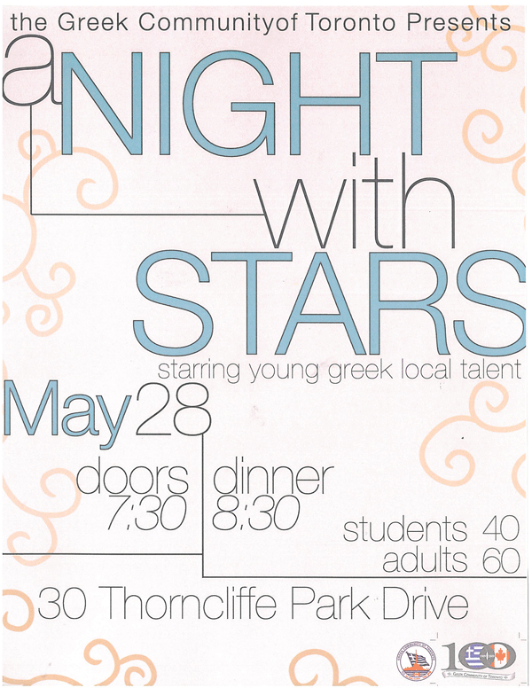 For information please call 416 – 425 – 2485 or e-mail us at: events@greekcommunity.org