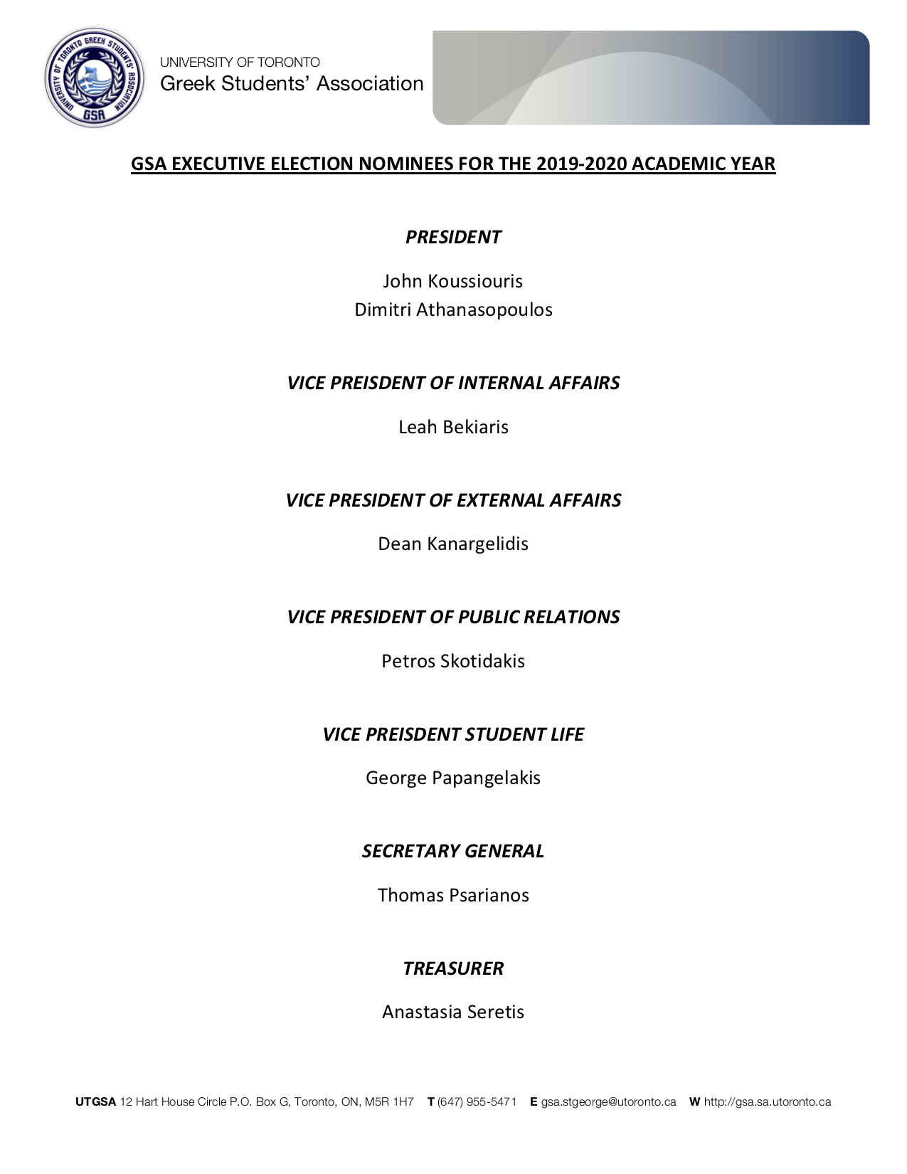 Here are the nominees for executive council positions for the upcoming 2019-2020 academic year. Thank you to everyone who nominated themselves! We are excited that you have shown interest to join our team.