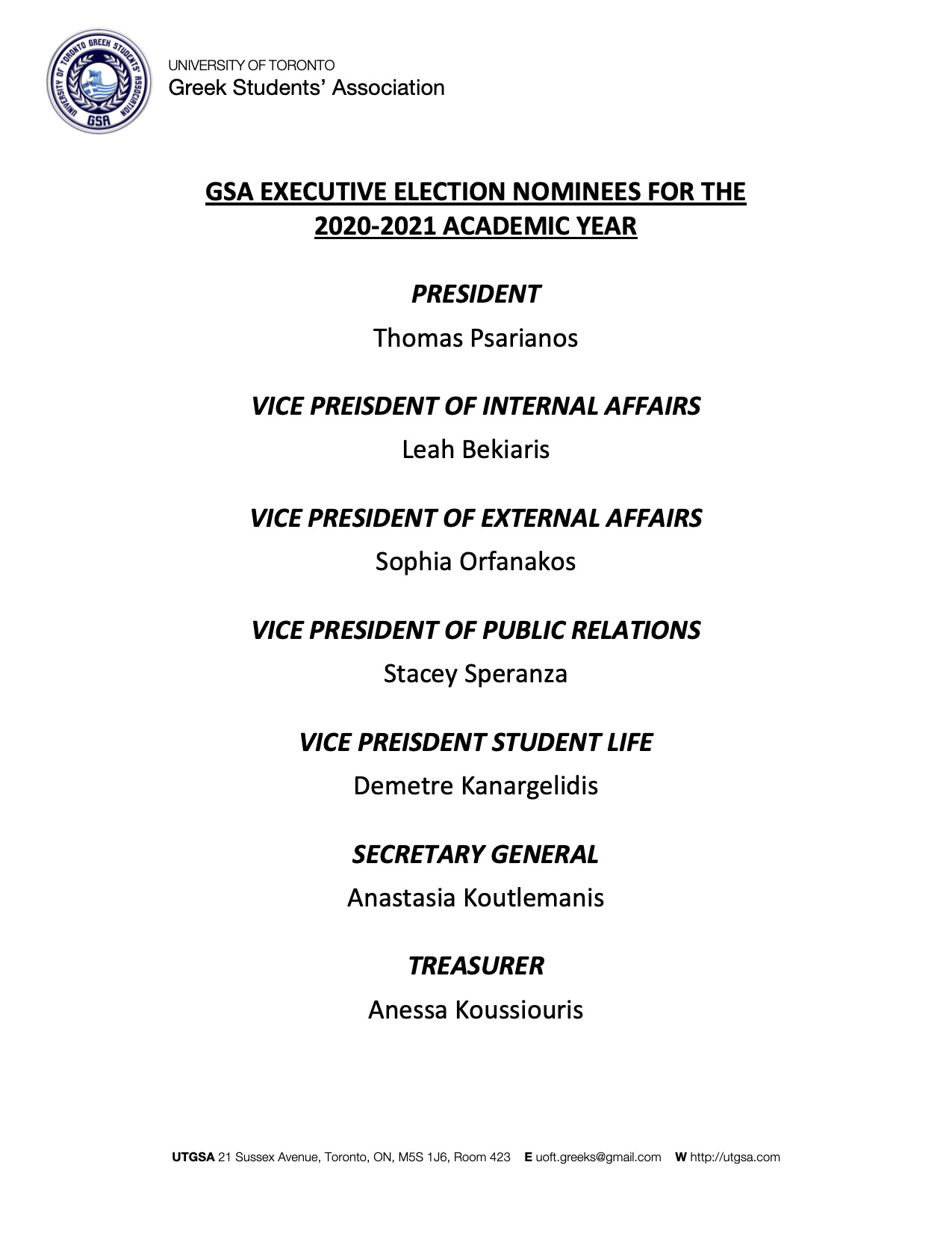 • Greek Students' Association of the University of Toronto